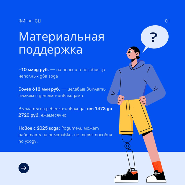 10. 10 млрд рублей направлено на поддержку инвалидов за 2024 год и 9 месяцев 2025 года.