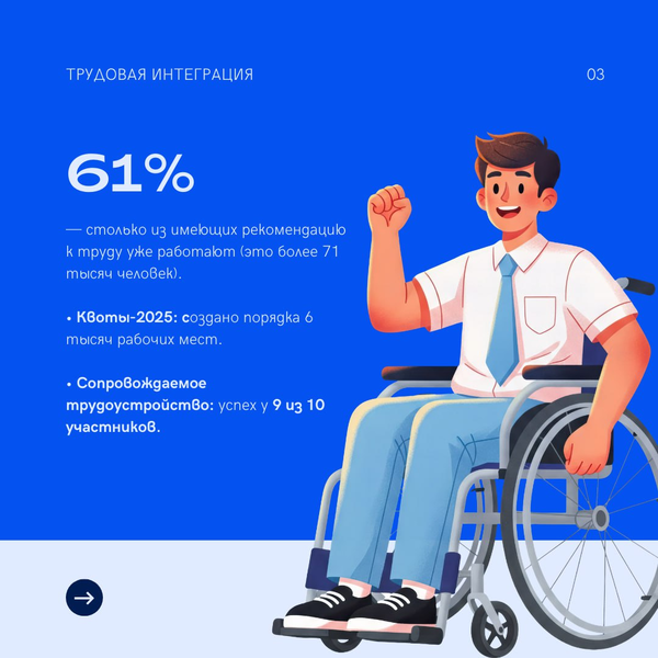 6. В 2025 году установлена квота для трудоустройства 6,1 тыс. инвалидов на 838 предприятиях.